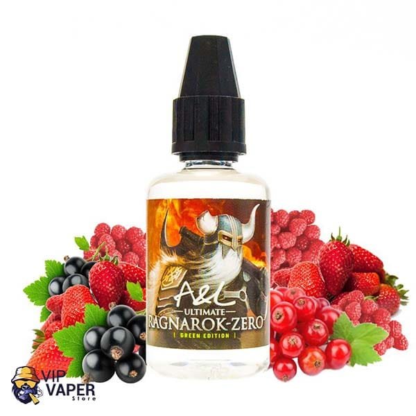 El aroma Ultimate Ragnarok Zero Green Edition de A&L te conmoverá por la intensidad de jugosas frambuesas y fresas dulces a las que acompañan grosellas negras y moras, en una experiencia única.
