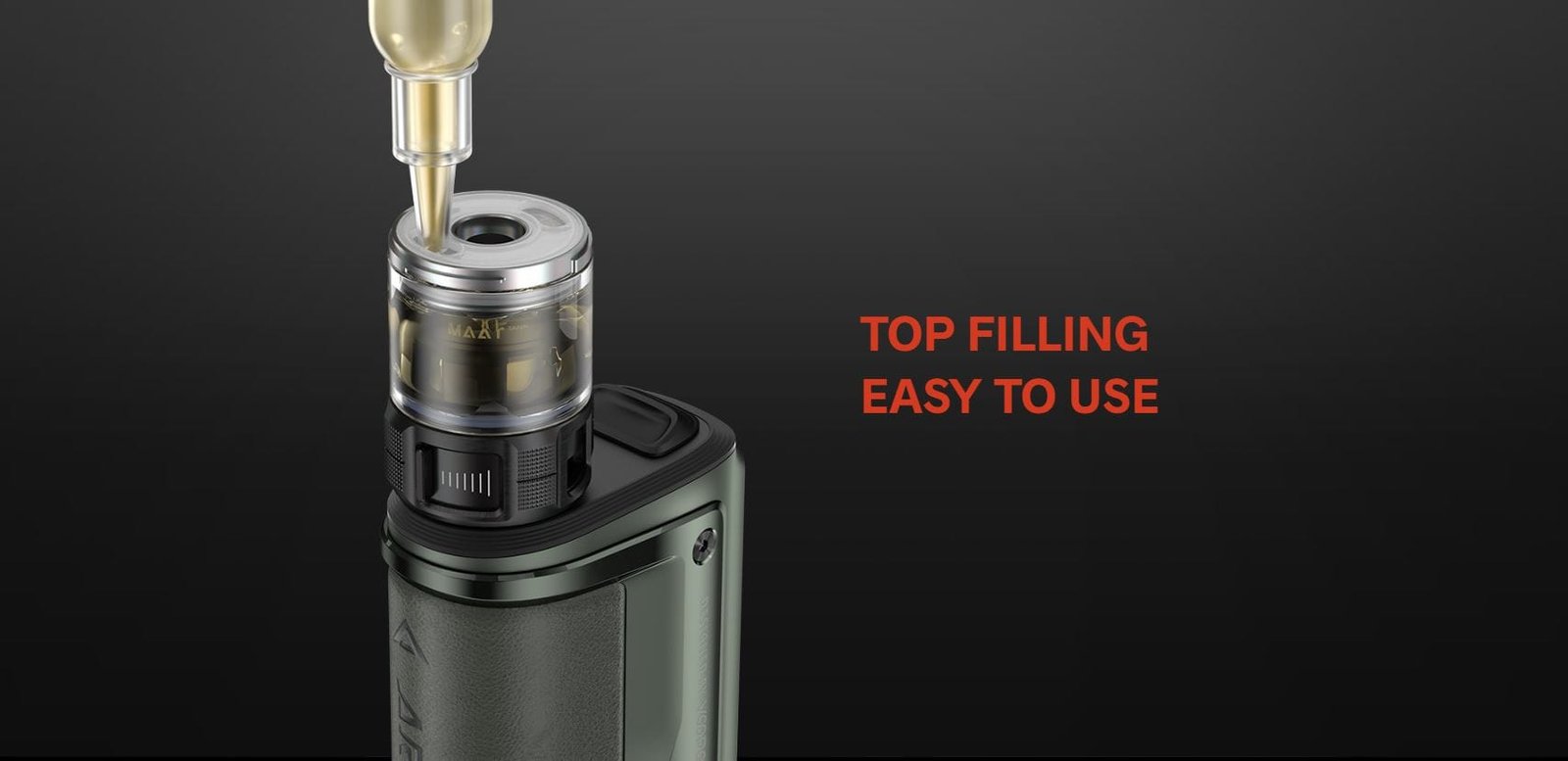 Para rellenar el atomizador, simplemente hay que acceder al orificio de entrada, retirando la pieza supeior del Maat Tank.