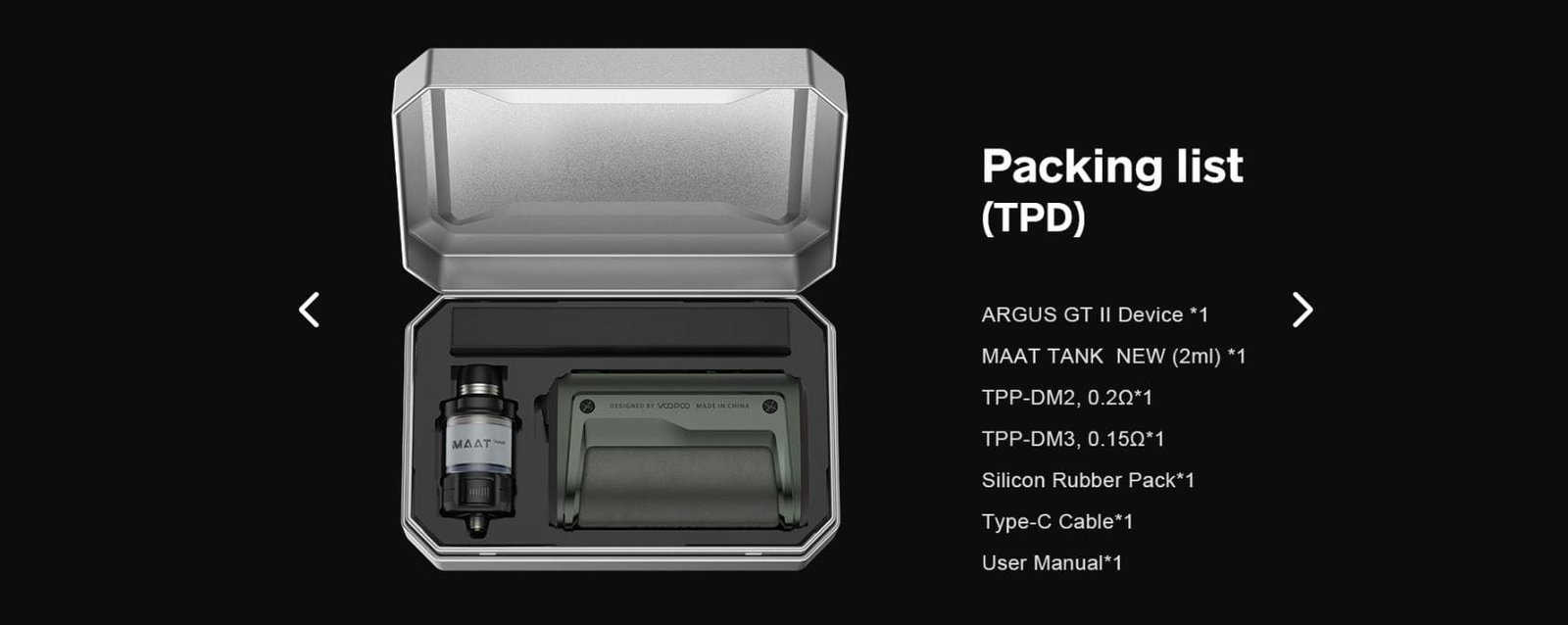 El Argus GT 2 es el dispositivo más robusto de Voopoo, ya que resiste al agua, al polvo y a golpes. Se trata de un kit que ofrece hasta 200W de potencia de salida estable gracias al uso de 2 baterías 18650; que viene equipado con el Maat Tank para un vapeo DL profundo gracias a su óptima gestión de flujo de aire.