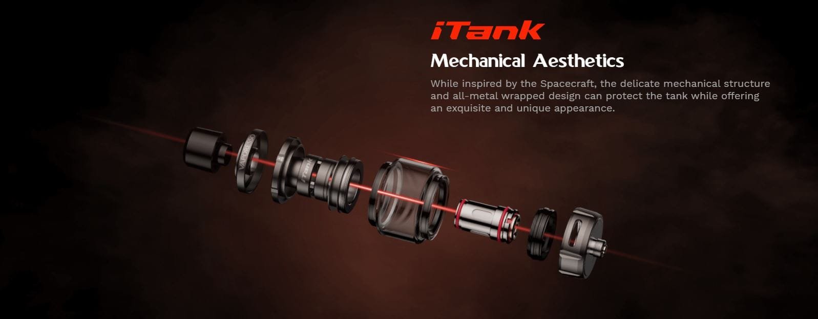 El kit del Target 100 viene equipado con el atomizador iTank; un claromizador inspirado en una nave espacial, que cuenta con una delicada estructura de metal que protege el tanque y ofrece una estética única.