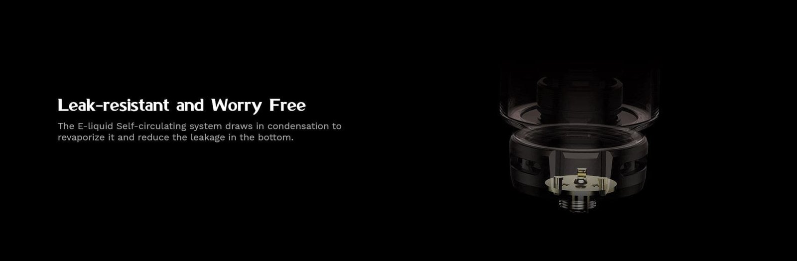El sistema de autocirculación de e-liquid aspira la condensación y la revaporiza para reducir las fugas.