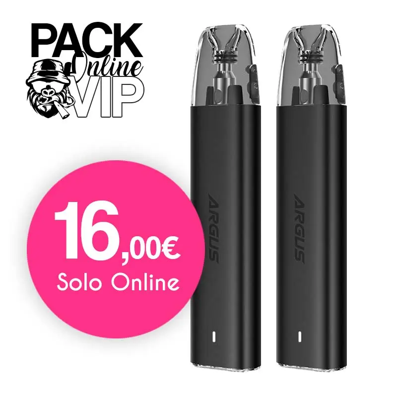 Pack Argus G2 Mini de Voopoo es una edición limitada que ofrece 2 dispositivos al precio de 1. Se trata de un dispositivo que ofrece un alto rendimiento, con un uso sencillo y un precio de lo más asequible. Integra una batería de 1200mAh, que ofrece hasta 30W de salida. Junto a su sistema de ajuste de flujo de aire y su pod Argus, proprociona un sabor óptimo.