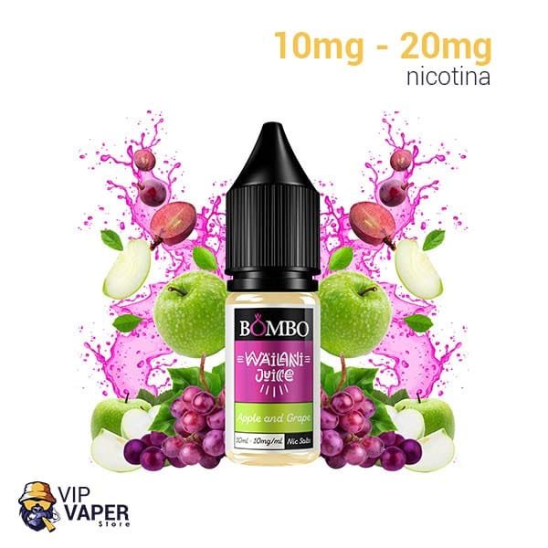 El líquido Apple and Grape de Wailani Juice Nic Salts by Bombo es una deliciosa combinación de las mejores manzanas dulces y uvas moradas. Una mezcla que aporta el sabor intenso y dulce de la fruta natural, unido a una textura sedosa muy agradable.